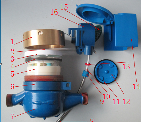 (2)在湿式水表中采用专利密封技术,将厚膜电路和字轮密封在透明的字轮盒内,可在不同的水质中使用,既保证水表的读数清晰,同时也保证电子传感器部分工作长期稳定可靠。