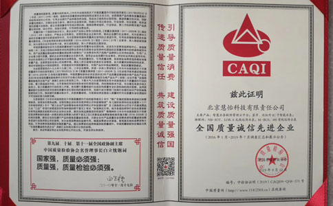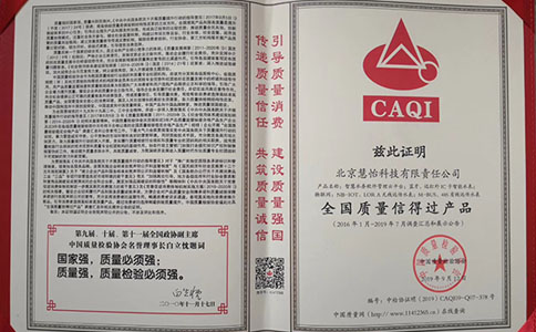经国家市场监督管理总局联合中共中央宣传部、国家发展和改革委员会、科学技术部、工业和信息化部、生态环境部、住房和城乡建设部等14部门联合开展的"质量月"活动中,慧怡科技连获 "全国质量诚信先进企业"、"全国质量检验先进企业"、"全国质量信用优秀企业"、"全国仪器仪表行业质量领先企业"、"全国质量信得过产品"等5项殊荣!