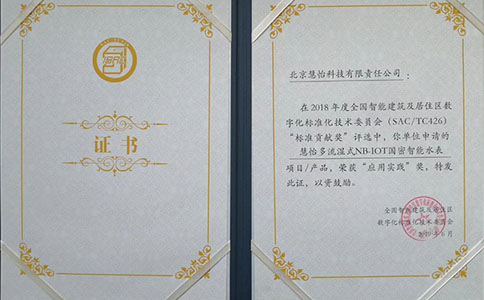 北京慧怡公司一直致力于远传水表产品设计研发,目前市场应用较多的就是这款“物联网NB-IOT无线远传水表”,实现智慧水务应用平台智能化管理。而且在2018年度全国智能建筑及居住区数字化标准化技术委员会(SAC/TC426)“标准贡献奖”评选中,慧怡多流湿式NB-IOT国密智能水表项目/产品,荣获“应用实践”奖。